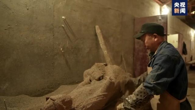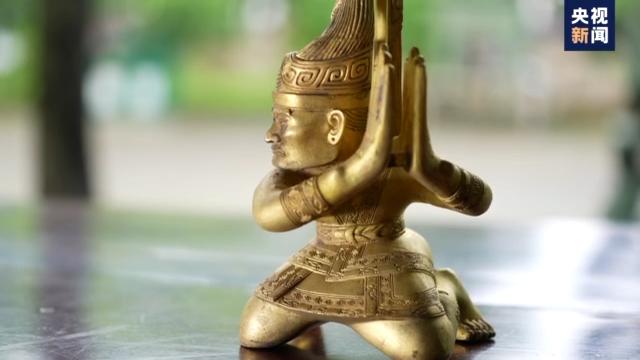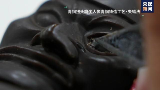 失蠟法鑄造手工藝體驗(yàn)者 賀枚陽:古蜀先民稱吉金,其實(shí)就是指金色,銅身綠袖鐵身紅袖,工匠他說你外面看到青色其實(shí)就是它的銹,其實(shí)它本來的顏色就是金色的。