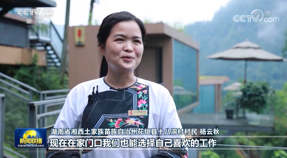 湖南省湘西土家族苗族自治州花垣縣十八洞村村民 楊云秋:現(xiàn)在在家門口就能選擇自己喜歡的工作,有穩(wěn)定的收入,不管是村里的面貌,還是我們的生活,都發(fā)生了翻天覆地的變化。