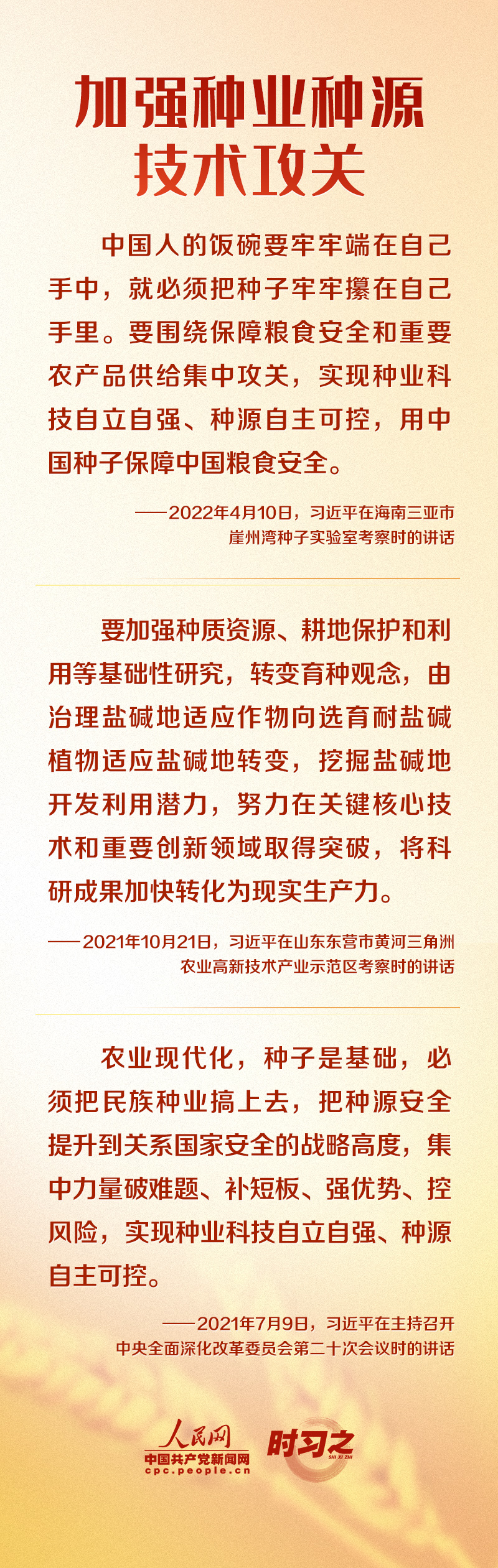 “國無農(nóng)不穩(wěn),農(nóng)以種為先! 糧食安全在習(xí)近平總書記心中有著特殊的分量,他多次深入田間地頭察墑情、看苗情、問收成,明確指出“解決吃飯問題,根本出路在科技。”黨的十八大以來,我國在種業(yè)種源、農(nóng)機(jī)農(nóng)藝、農(nóng)業(yè)技術(shù)集成推廣等領(lǐng)域全面部署,不斷推動“藏糧于地、藏糧于技”戰(zhàn)略落實落地。
