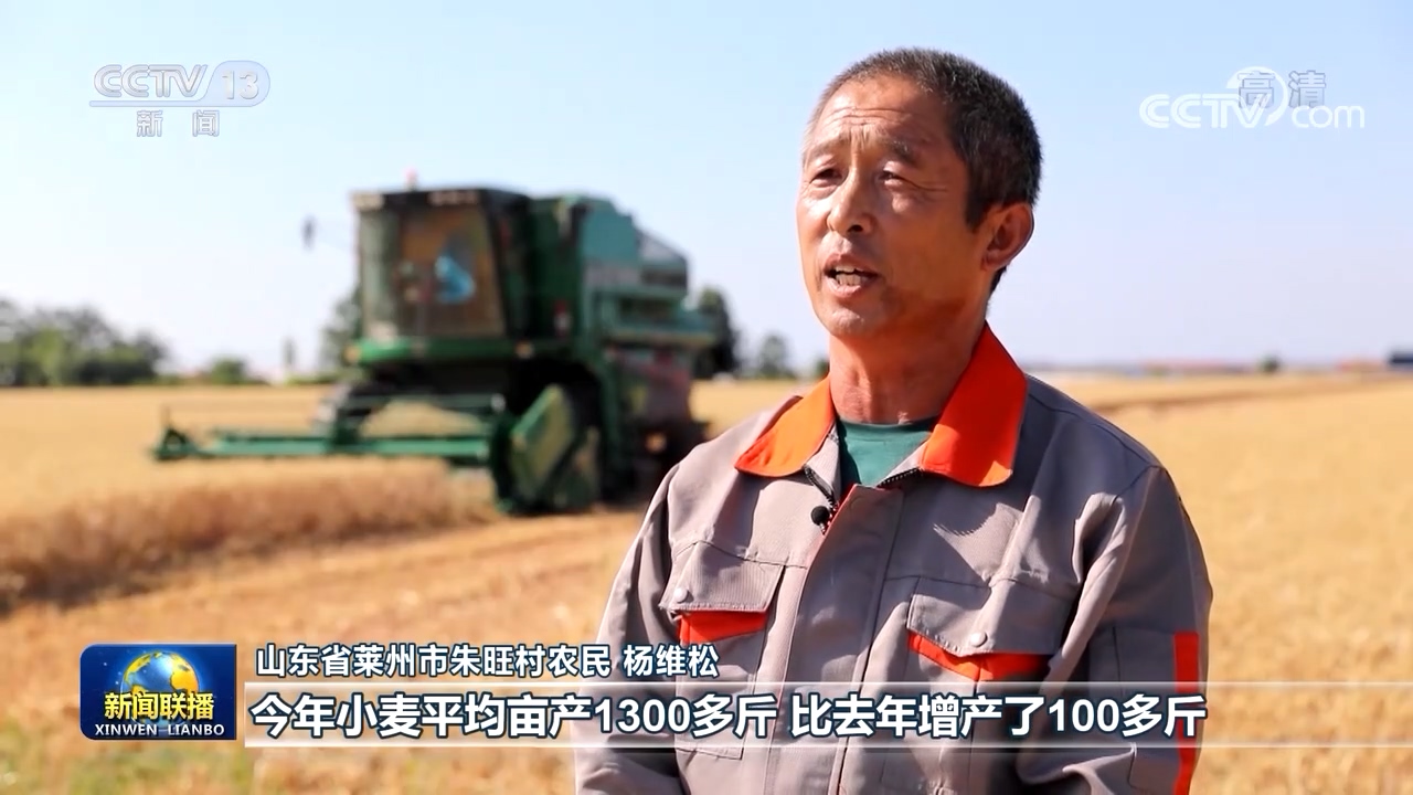 山東省萊州市朱旺村農(nóng)民 楊維松:今年小麥平均畝產(chǎn)1300多斤,比去年增產(chǎn)了100多斤。每畝節(jié)本增效200多元,效益非?捎^。