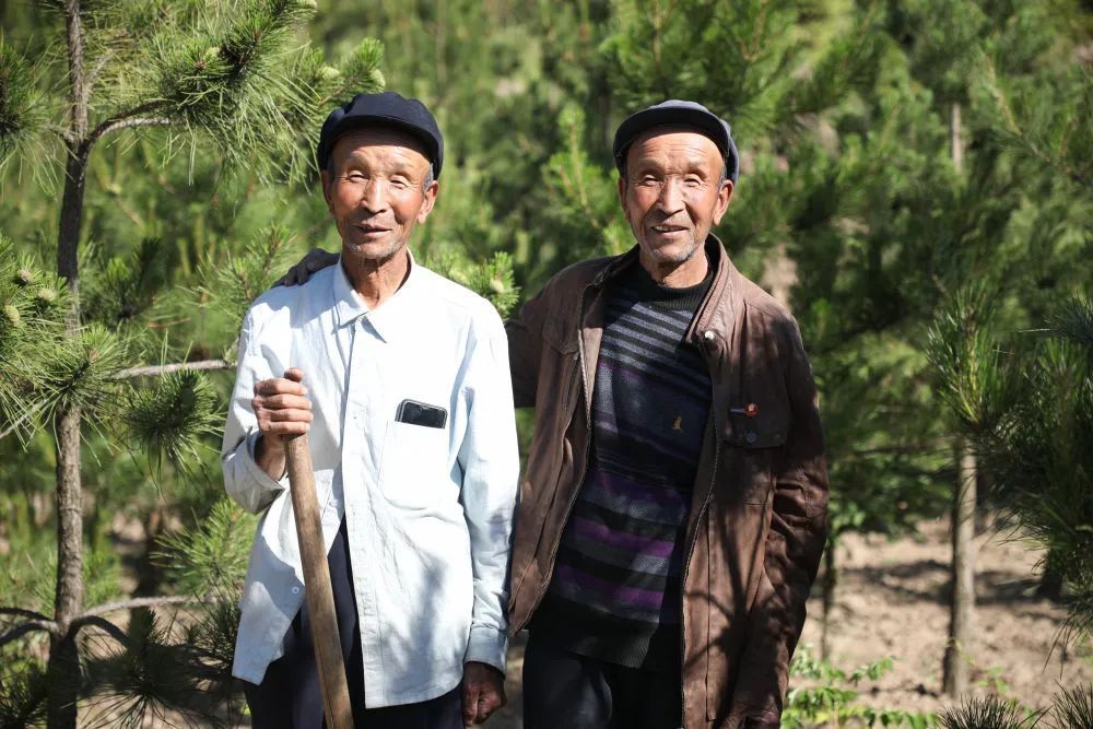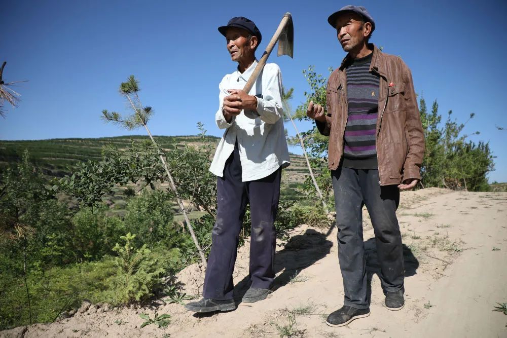 6月15日,在甘肅省定西市通渭縣榜羅鎮(zhèn)張川村許堡社,許志剛(左)和許志強(qiáng)去看望樹林生長情況。新華社記者 馬希平 攝