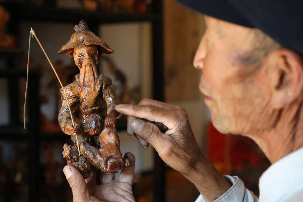 6月15日,在甘肅省定西市通渭縣榜羅鎮(zhèn)張川村許堡社,許志剛在家中擺放自己制作的根雕作品。新華社記者 馬希平 攝