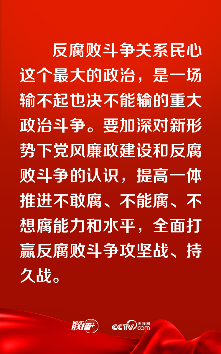 ▲要加強(qiáng)黨中央對(duì)反腐敗工作的集中統(tǒng)一領(lǐng)導(dǎo),發(fā)揮黨的政治優(yōu)勢、組織優(yōu)勢、制度優(yōu)勢,壓實(shí)各級(jí)黨委(黨組)全面從嚴(yán)治黨主體責(zé)任特別是“一把手”第一責(zé)任人責(zé)任,貫通落實(shí)相關(guān)職能部門監(jiān)管職責(zé),健全各負(fù)其責(zé)、統(tǒng)一協(xié)調(diào)的管黨治黨責(zé)任格局。