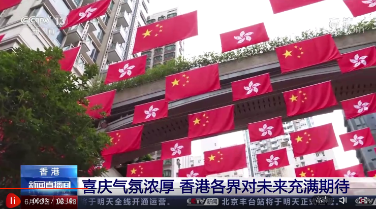 砥礪奮進(jìn)25載,攜手再上新征程。連日來,香港多地都懸掛起國旗和區(qū)旗以及祝福的標(biāo)語,慶祝香港回歸祖國25周年。
