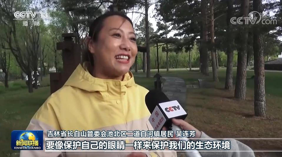 吉林省長(zhǎng)白山管委會(huì)池北區(qū)二道白河鎮(zhèn)居民 吳連芳:要像保護(hù)自己的眼睛一樣來(lái)保護(hù)我們的生態(tài)環(huán)境,也希望世界各地的所有的游客都能到我們長(zhǎng)白山來(lái)旅游、來(lái)做客,來(lái)感受一下我們長(zhǎng)白山天然大“氧吧”的這種氛圍,讓長(zhǎng)白山成為所有人我心向往之的旅游勝地。