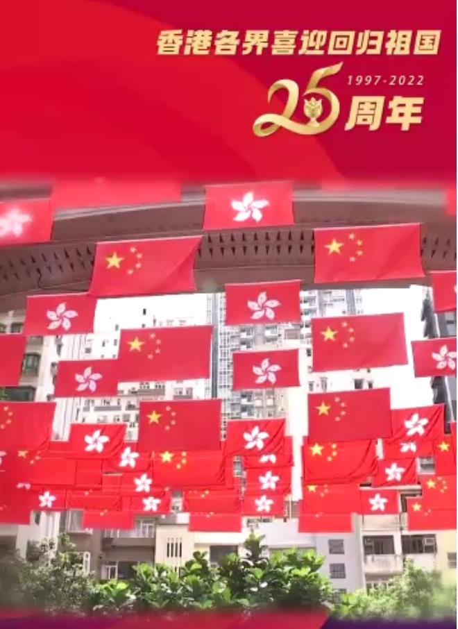 香港回歸25周年在即。砥礪奮進(jìn)25載,再上新征程。連日來(lái),香港各界舉辦形式多樣的慶;顒(dòng),街頭巷尾懸掛起國(guó)旗和區(qū)旗以及祝福的標(biāo)語(yǔ),喜慶氣氛日漸濃厚。