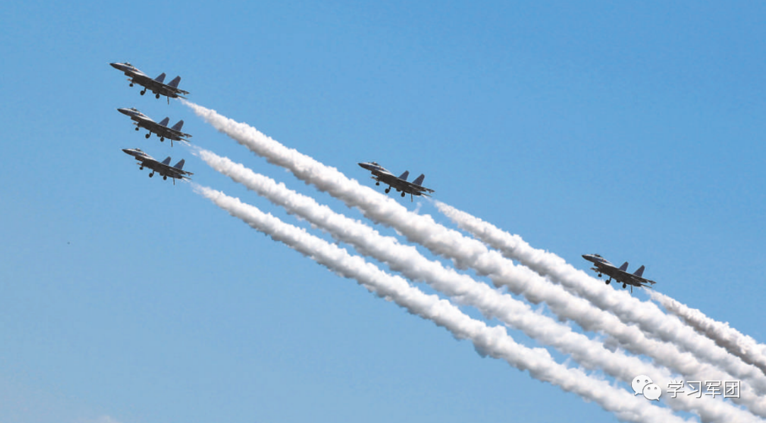 又一個(gè)飛行日,又一批雄鷹礪翅。從指揮塔臺(tái)眺望,一架架殲-15戰(zhàn)機(jī)正沖出滑躍甲板,奮飛在強(qiáng)軍興軍的勝利航道上……