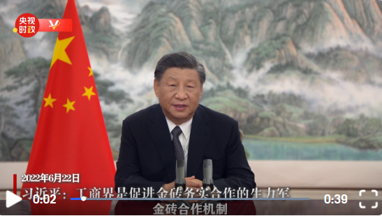 6月22日晚,國(guó)家主席習(xí)近平以視頻方式出席金磚國(guó)家工商論壇開(kāi)幕式并發(fā)表題為《把握時(shí)代潮流 締造光明未來(lái)》的主旨演講。
