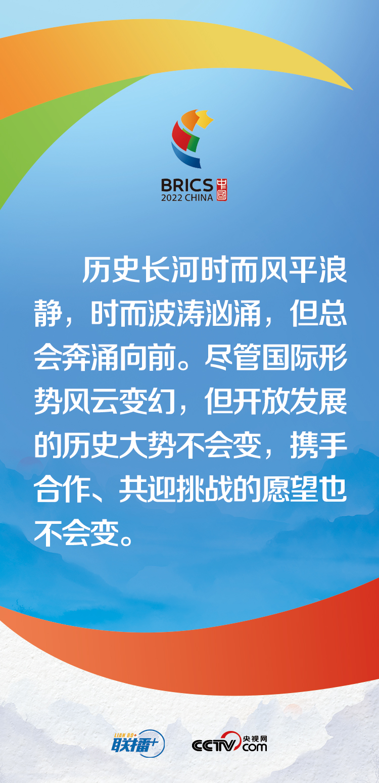 聯(lián)播+“盡管國(guó)際形勢(shì)風(fēng)云變幻,但開(kāi)放發(fā)展的歷史大勢(shì)不會(huì)變,攜手合作、共迎挑戰(zhàn)的愿望也不會(huì)變。”6月22日,習(xí)近平主席以視頻方式出席金磚國(guó)家工商論壇開(kāi)幕式并發(fā)表主旨演講,再答“時(shí)代之問(wèn)”。