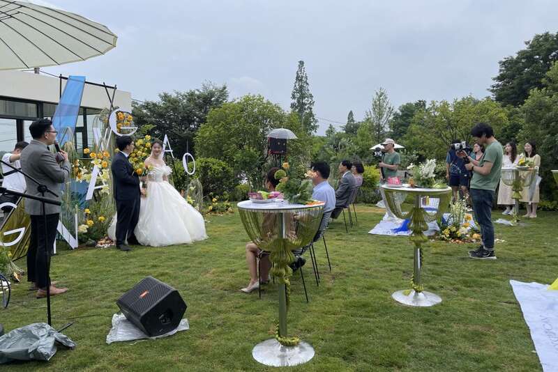 5月28日,一對新人在主題民宿“彌宮”舉辦婚禮。新華社記者 岳德亮 攝