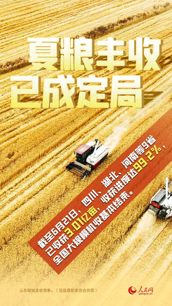 據(jù)農(nóng)業(yè)農(nóng)村部數(shù)據(jù)顯示,截至6月21日,四川、湖北、河南、安徽、江蘇、陜西、山東、河北、山西等9省已收獲小麥3.01億畝,收獲進度達99.2%,全國大規(guī)模機收基本結(jié)束。