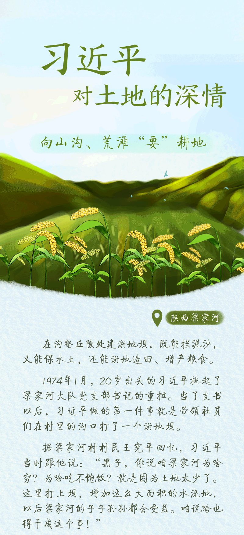央視網(wǎng)《繪學(xué)習(xí)》欄目邀您一同通過幾個(gè)小故事,感受總書記對(duì)土地的深情。