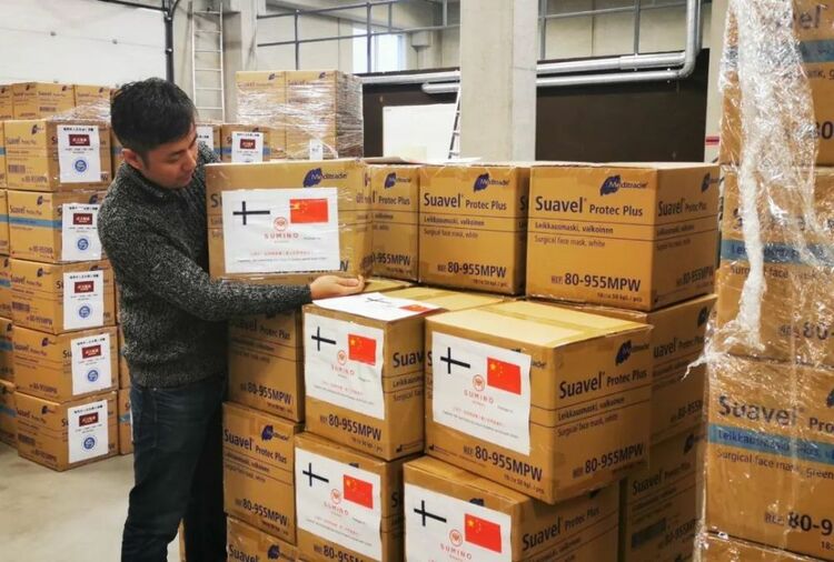 2020年1月31日,芬蘭赫爾辛基,當(dāng)?shù)厝A人協(xié)助整理捐贈國內(nèi)的物資 朱昊晨攝 / 本刊