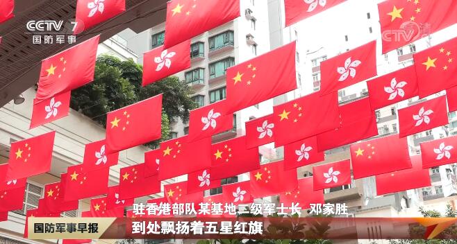 駐香港部隊(duì)某基地二級軍士長 鄧家勝:香港回歸25周年,香港的大街小巷已經(jīng)有了慶回歸的氛圍,到處都飄揚(yáng)著五星紅旗。