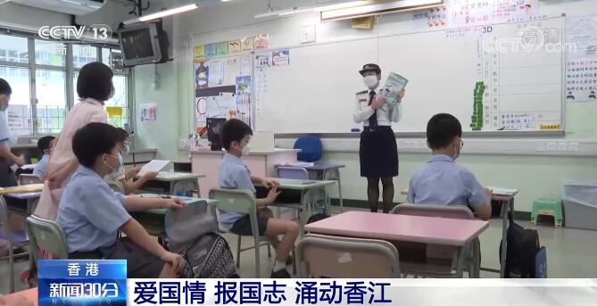 如今,全港中小學(xué)每周都會(huì)舉行升旗儀式,在每個(gè)上課日以及國(guó)慶日、香港回歸紀(jì)念日等重要日子都會(huì)升掛國(guó)旗,國(guó)家觀念筑牢在青少年心中。在香港培僑中學(xué)初二年級(jí)的中國(guó)歷史課堂上,老師正帶領(lǐng)同學(xué)們討論著中國(guó)如何從鴉片戰(zhàn)爭(zhēng)后積貧積弱走向如今的民族復(fù)興。