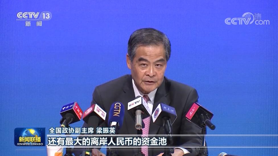 全國政協(xié)副主席 梁振英:香港作為一個(gè)國際金融、貿(mào)易中心的同時(shí),可以發(fā)展出最大、最主要的離岸人民幣市場,還有最大的離岸人民幣的資金池,活生生地說明了“一國兩制”是科學(xué)的、可行的,同時(shí)是有生命力的。