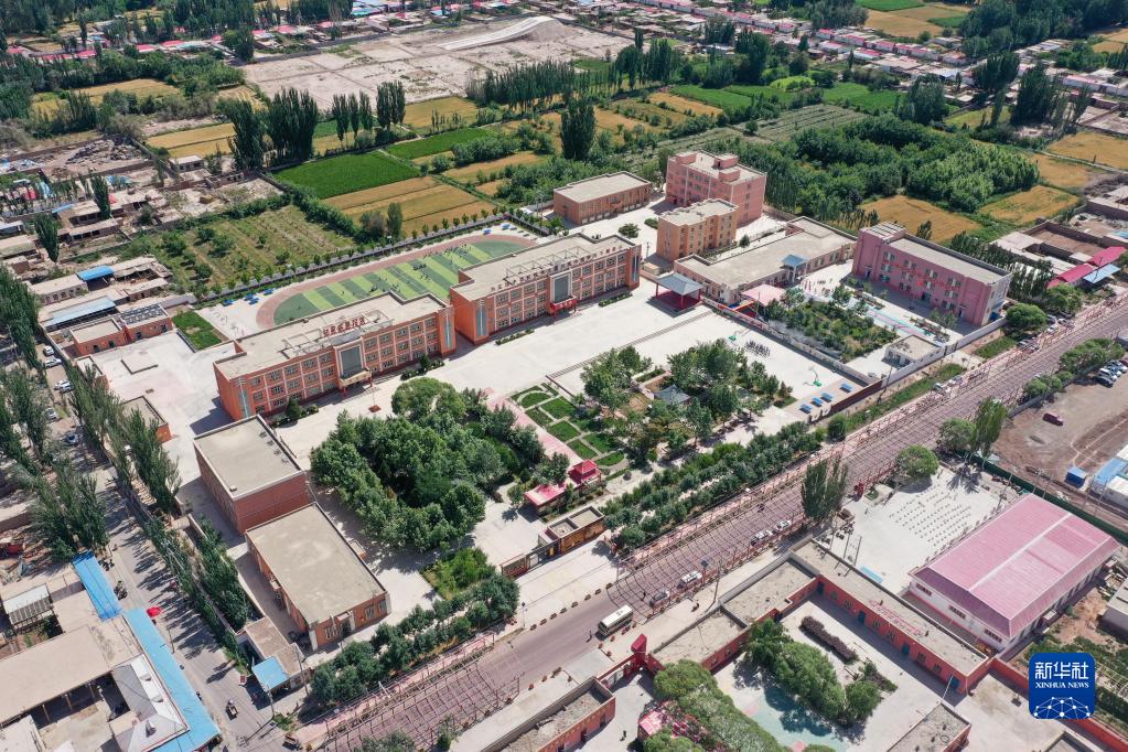 這是新疆喀什地區(qū)疏附縣托克扎克鎮(zhèn)中心小學(xué)(2022年6月10日攝,無人機照片)。新華社記者 丁磊 攝