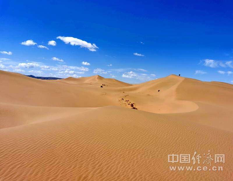 6月27日,“2022中國有約 A Date with China”采訪團(tuán)來到寧夏中衛(wèi)沙坡頭國家級(jí)自然保護(hù)區(qū),探訪騰格里沙漠邊緣的“綠色屏障”。這里是歷史上受風(fēng)沙災(zāi)害最為嚴(yán)重的地區(qū)之一,在與沙漠的不懈抗?fàn)幹校嗣駝?chuàng)造了“草方格”治沙法,建設(shè)生態(tài)防護(hù)林、生態(tài)經(jīng)濟(jì)林,形成“綠色屏障”,實(shí)現(xiàn)“人進(jìn)沙退”。圖為騰格里沙漠的漫漫黃沙。中國經(jīng)濟(jì)網(wǎng)記者 馬常艷攝