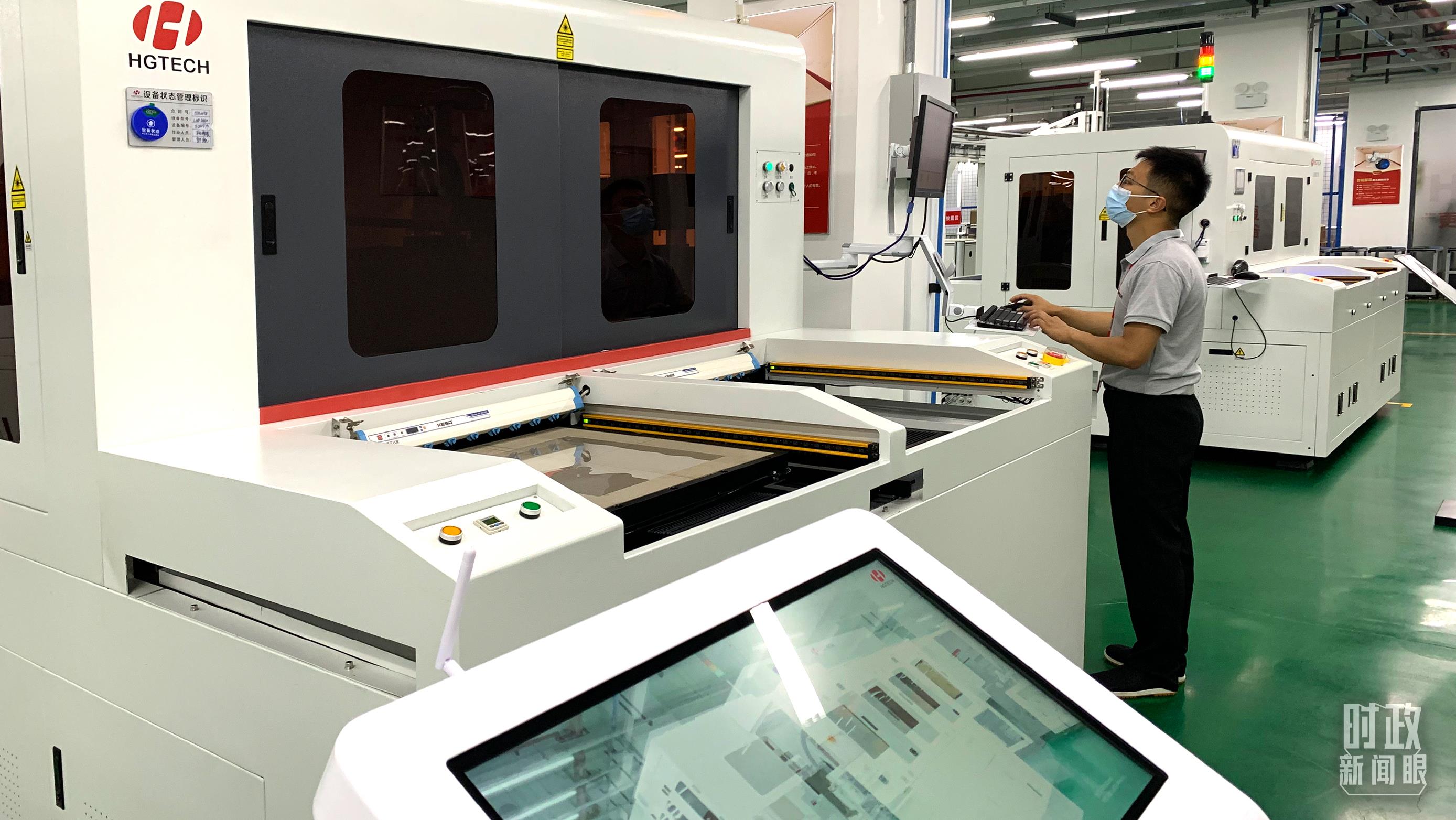 △華工激光,智能數(shù)控平面激光切割演示。(總臺央視記者王鵬飛拍攝)