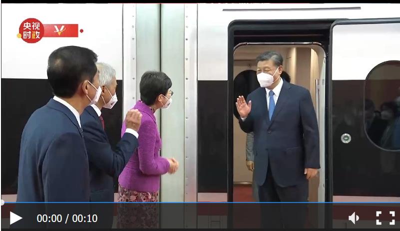 獨(dú)家視頻丨習(xí)近平步出車廂 受到香港各界人士熱烈歡迎