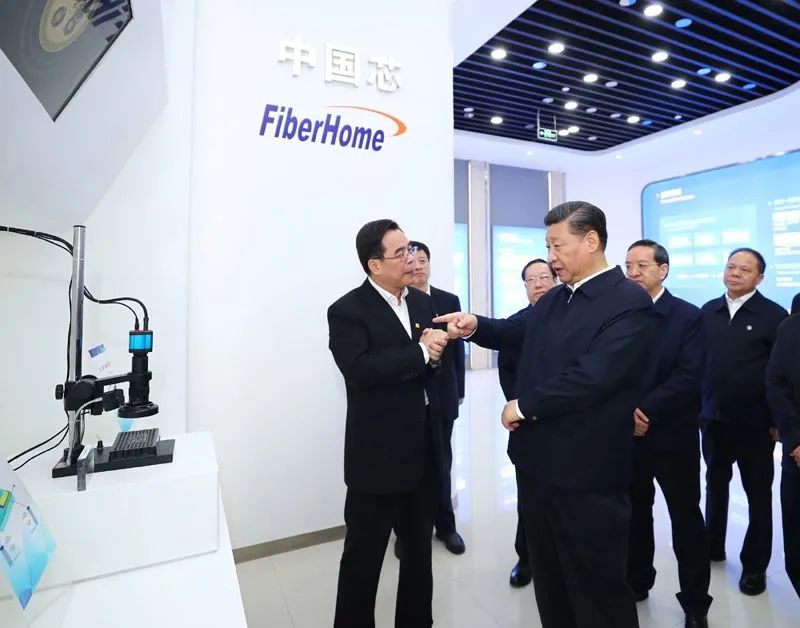 這一次,習近平總書記來到烽火科技集團考察,一邊查看企業(yè)研制的芯片、光纖等高科技產(chǎn)品,一邊了解產(chǎn)品用途、性能、國產(chǎn)化率、在國際同行業(yè)中的地位等情況。