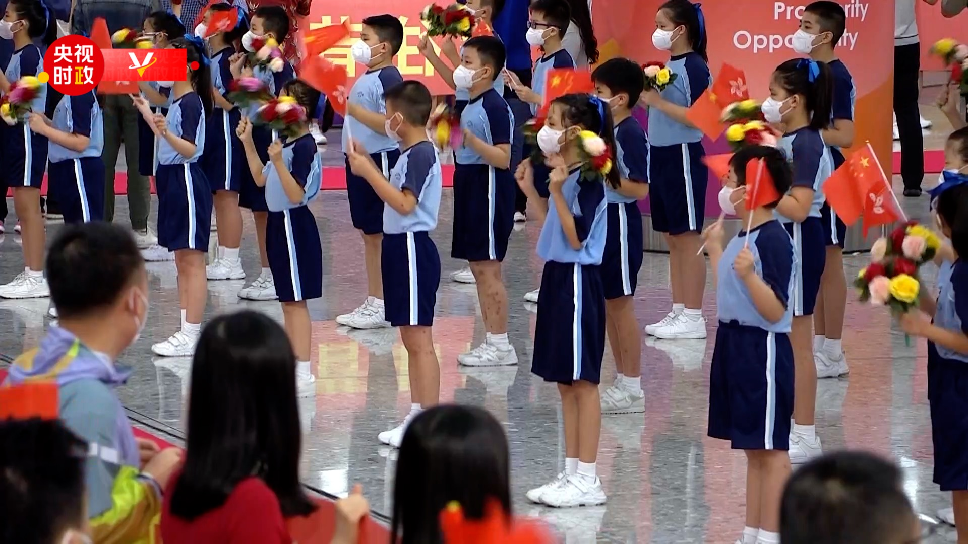 揮動國旗、特別行政區(qū)區(qū)旗和鮮花