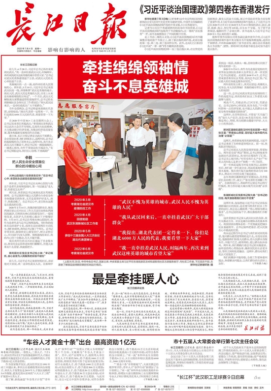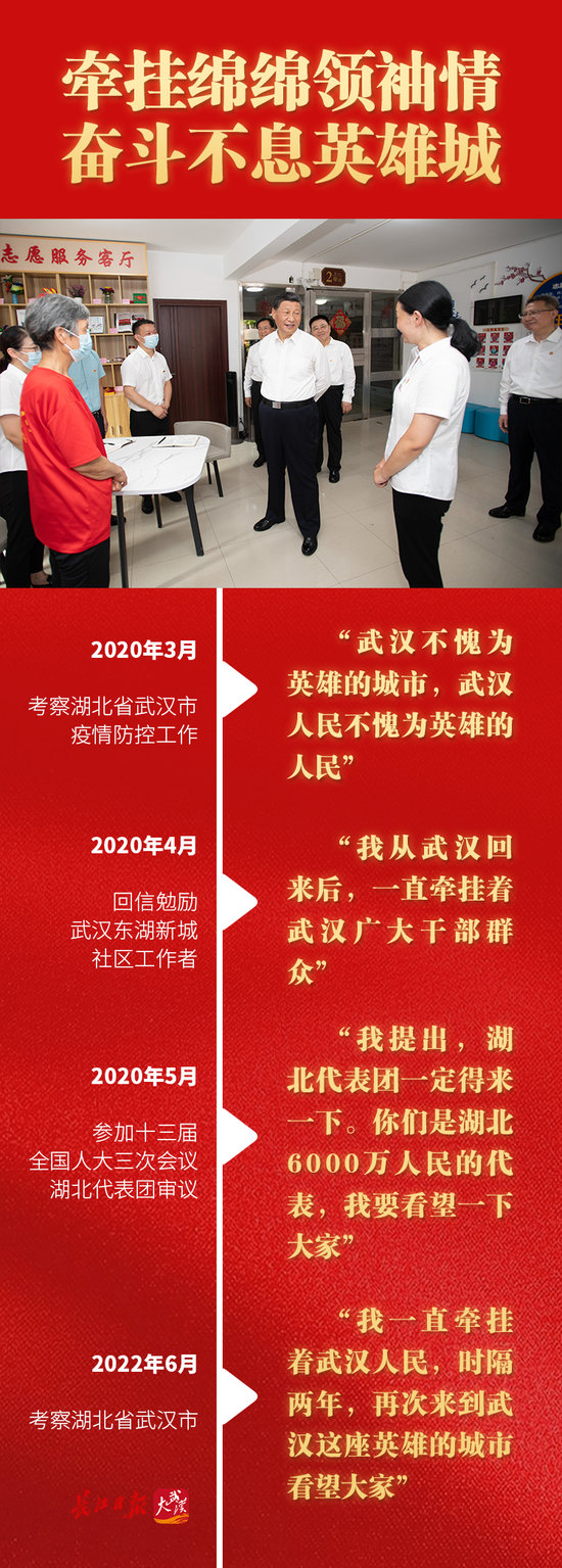 前幾天,6月28日,習(xí)近平總書記再次來到湖北武漢,“我一直牽掛著武漢人民,時隔兩年,再次來到武漢這座英雄的城市看望大家!笨倳泴ξ錆h的真摯感情溢于言表,對武漢人民的關(guān)心牽掛溢于言表。