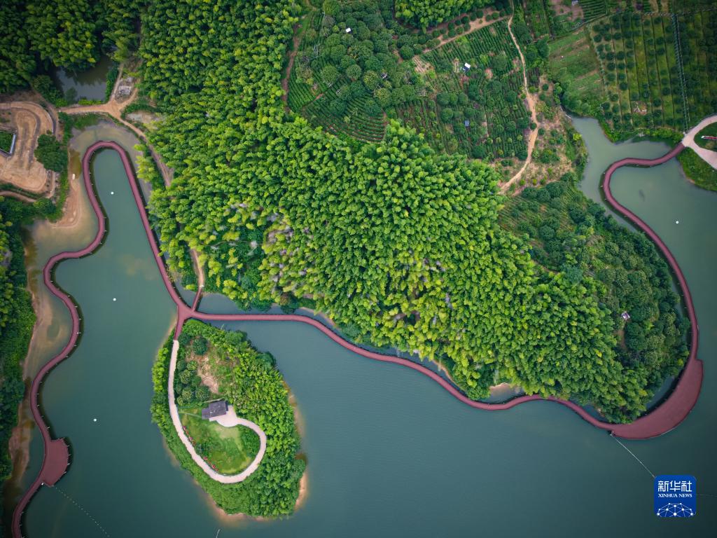 這是7月7日拍攝的慈城鎮(zhèn)南聯(lián)村水上棧道景觀(無人機照片)。