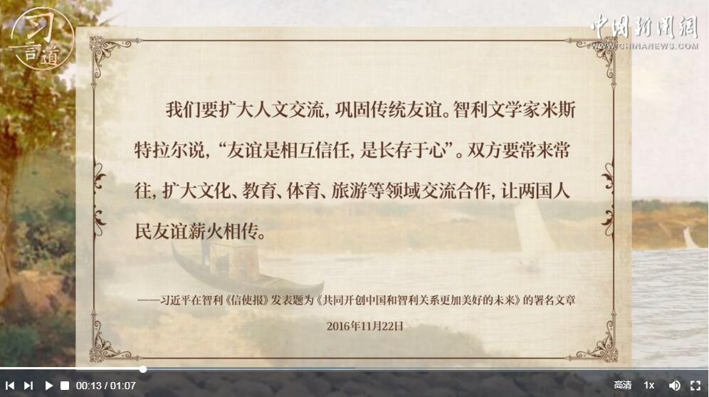 習(xí)言道|習(xí)近平引用智利格言談友誼