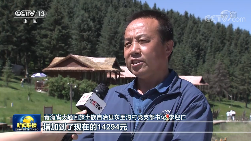 青海省大通回族土族自治縣東至溝村黨支部書記 李迎仁:我們東至溝村的村集體經濟從原來的零突破到了現在的130多萬了。我們的農戶(年)人均收入提高了,從原來的2000多元,增加到了現在的14294元。