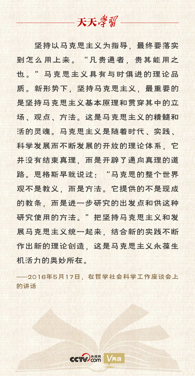 對(duì)待馬克思主義,不能采取教條主義的態(tài)度,也不能采取實(shí)用主義的態(tài)度。習(xí)近平總書(shū)記指出:“把堅(jiān)持馬克思主義和發(fā)展馬克思主義統(tǒng)一起來(lái),結(jié)合新的實(shí)踐不斷作出新的理論創(chuàng)造,這是馬克思主義永葆生機(jī)活力的奧妙所在!边@既指明了堅(jiān)持馬克思主義指導(dǎo)地位不動(dòng)搖的極端重要性,也為新時(shí)代馬克思主義“怎么用”“怎樣發(fā)展”指明了方向、提供了重要遵循。