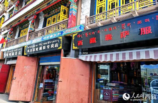 環(huán)繞拉薩八廓古城,開滿了藏裝店。人民網(wǎng) 李海霞攝