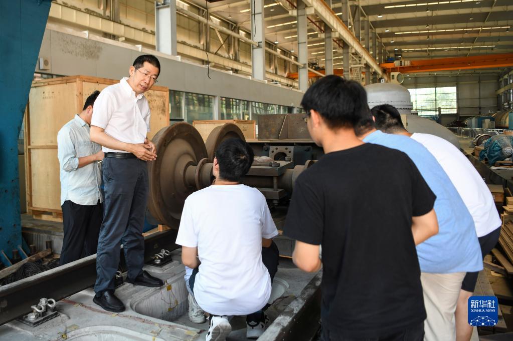 6月29日,在西南交通大學(xué)牽引動(dòng)力國(guó)家重點(diǎn)實(shí)驗(yàn)室,翟婉明(左二)在指導(dǎo)學(xué)生。 新華社記者 王曦 攝