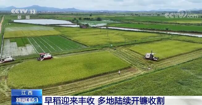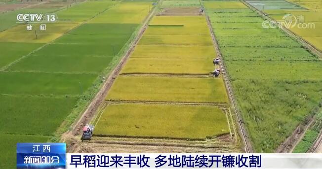 央視網(wǎng)消息:小暑時(shí)節(jié),江西多地早稻陸續(xù)進(jìn)入成熟期,田間地頭大型收割機(jī)穿梭其中,一派忙碌景象。