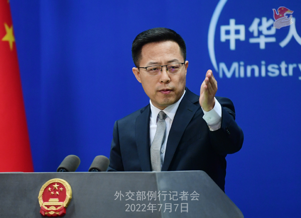 外交部發(fā)言人趙立堅7月7日表示,地方交流合作是中美關(guān)系發(fā)展的重要基礎(chǔ),加強交流合作是民心所向、大勢所趨。美方應(yīng)摘掉有色眼鏡,停止干擾破壞兩國地方和民間交往。