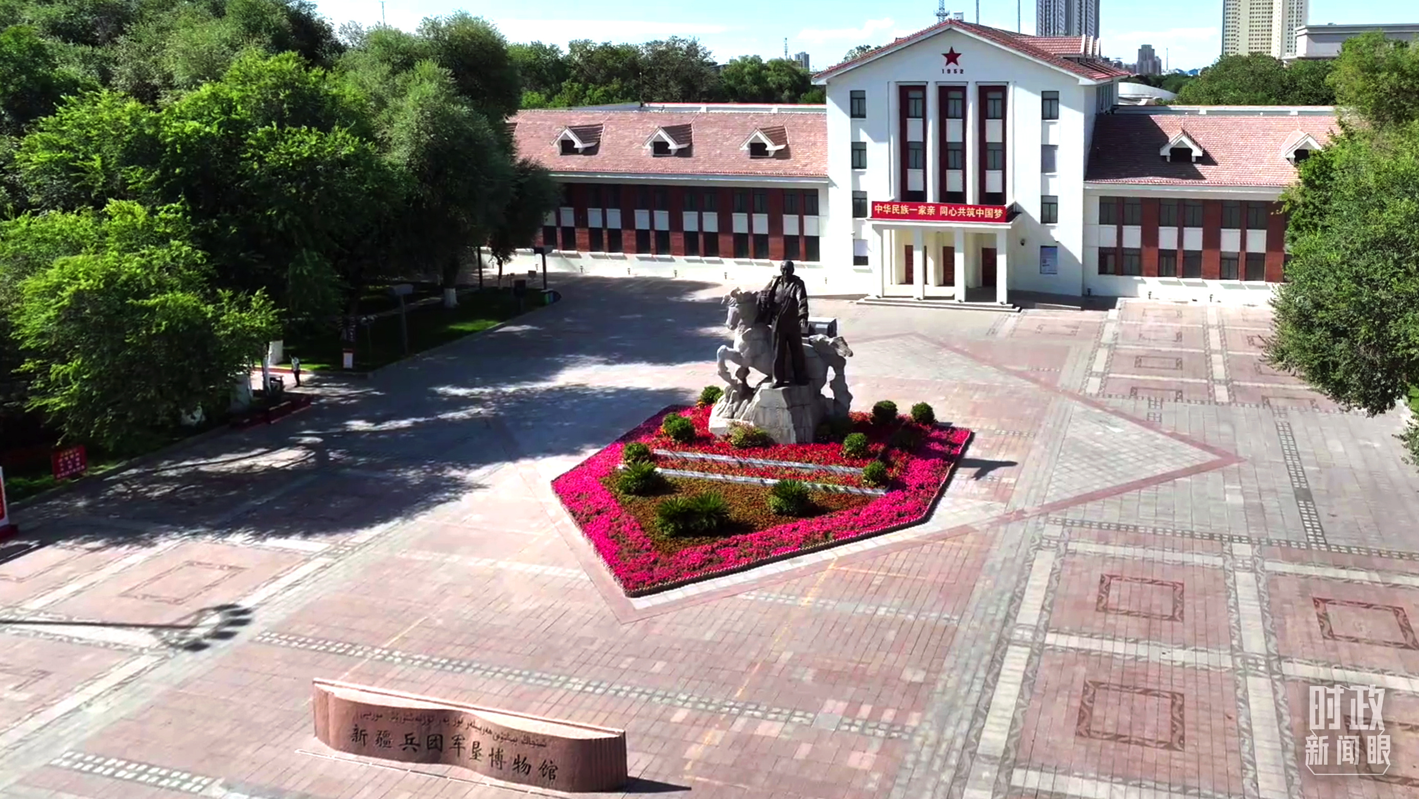 △軍墾博物館前的王震將軍雕像。(總臺央視記者彭漢明拍攝)