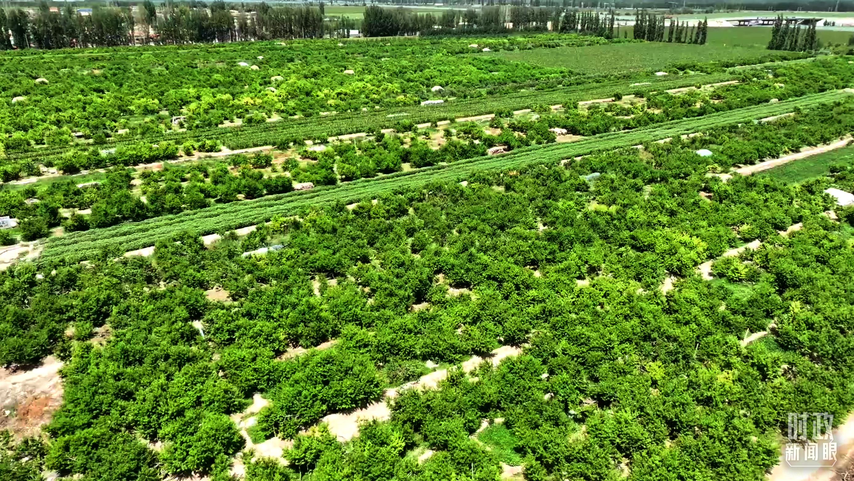 △俯瞰一四三團九連蟠桃種植園。(總臺記者郭培宇拍攝)