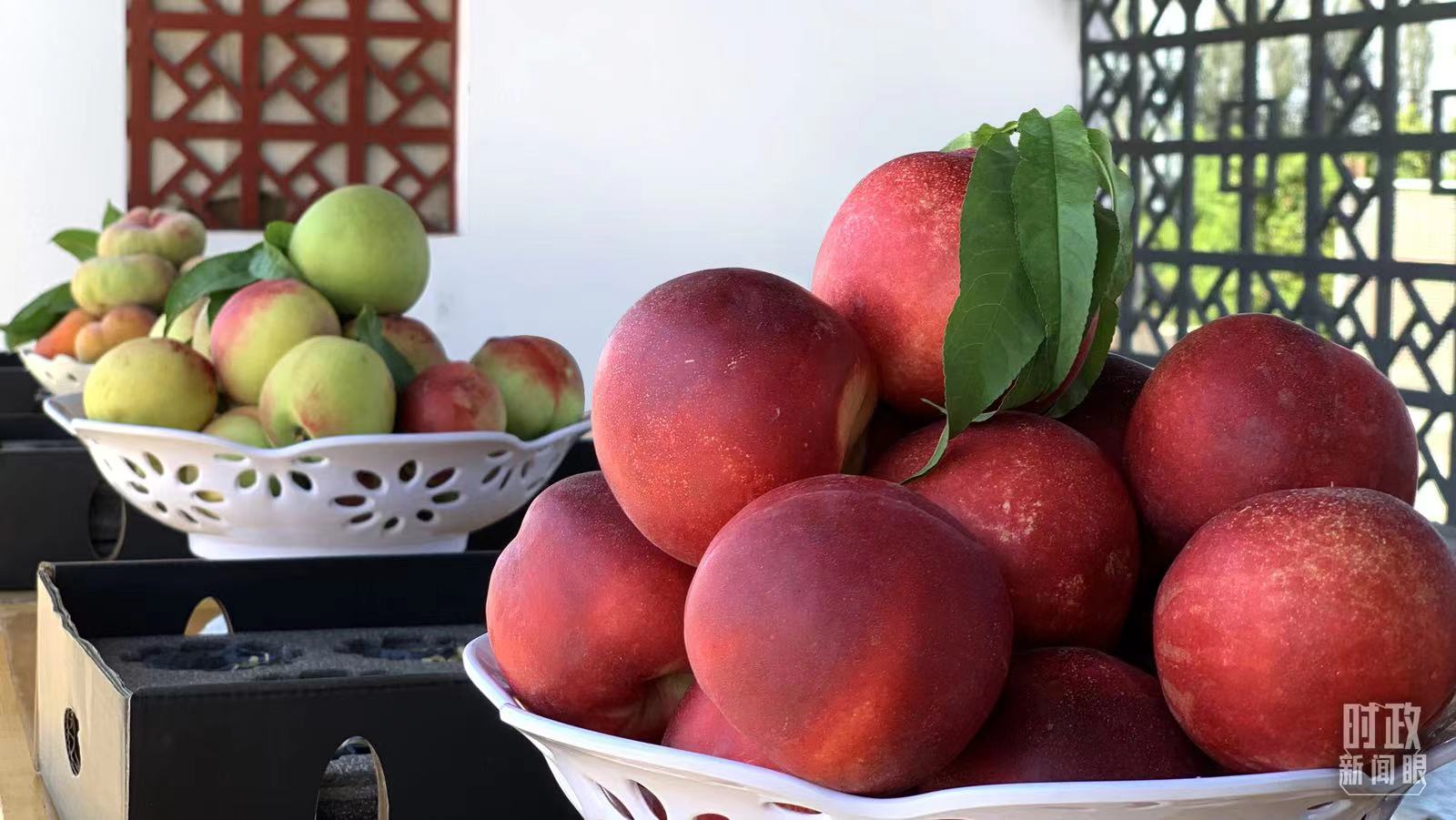 △一四三團九連出產(chǎn)的鮮桃。(總臺央視記者段德文拍攝)