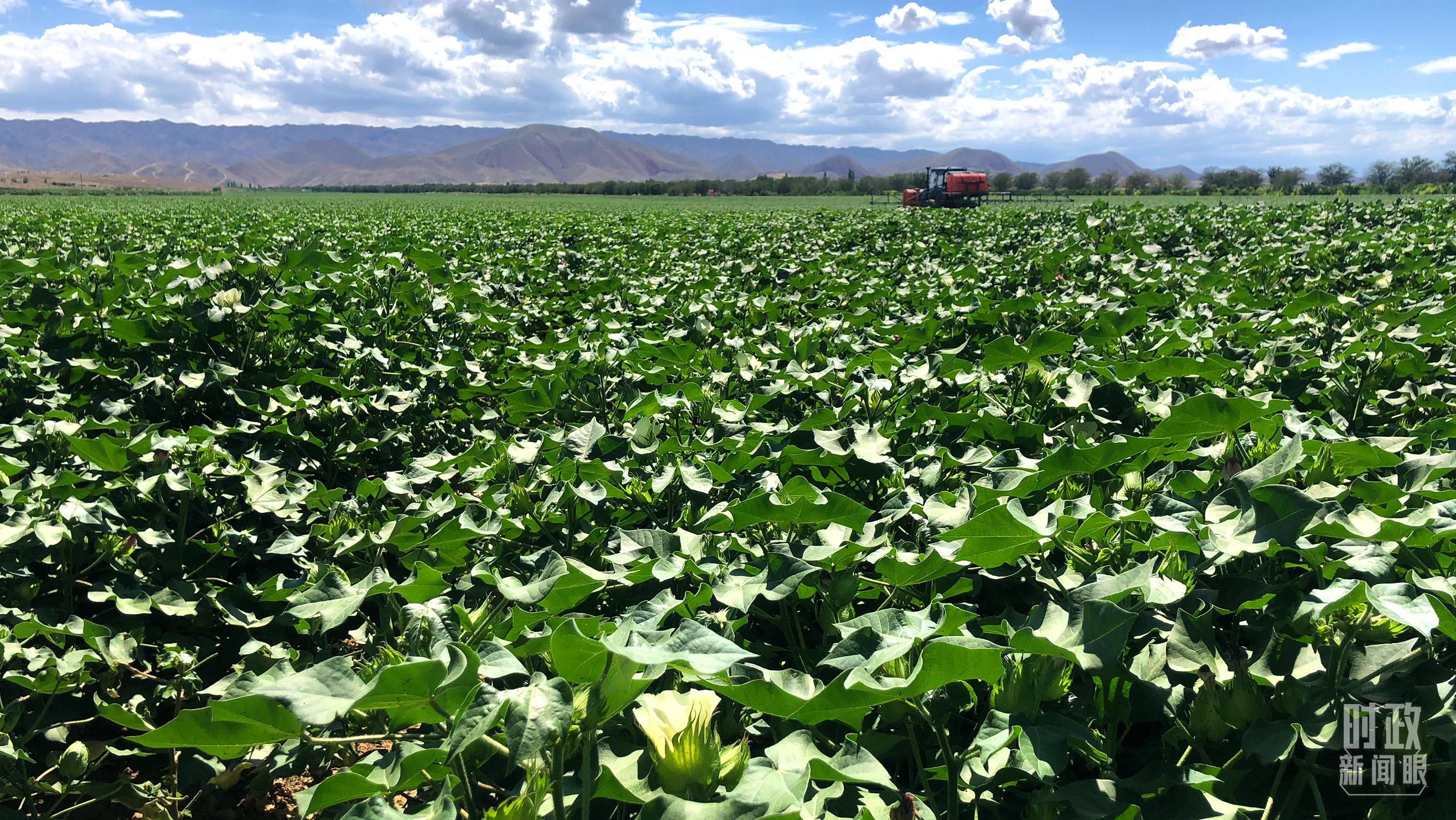 △這片棉田位于一四三團,目前處于花鈴期,是決定產(chǎn)量和品質(zhì)的關(guān)鍵時期。(總臺央視記者許永松拍攝)