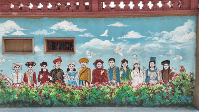 △當(dāng)?shù)氐奈幕瘔L上,專門呈現(xiàn)了新城西門村和十八洞村元素。(總臺記者曹江拍攝)