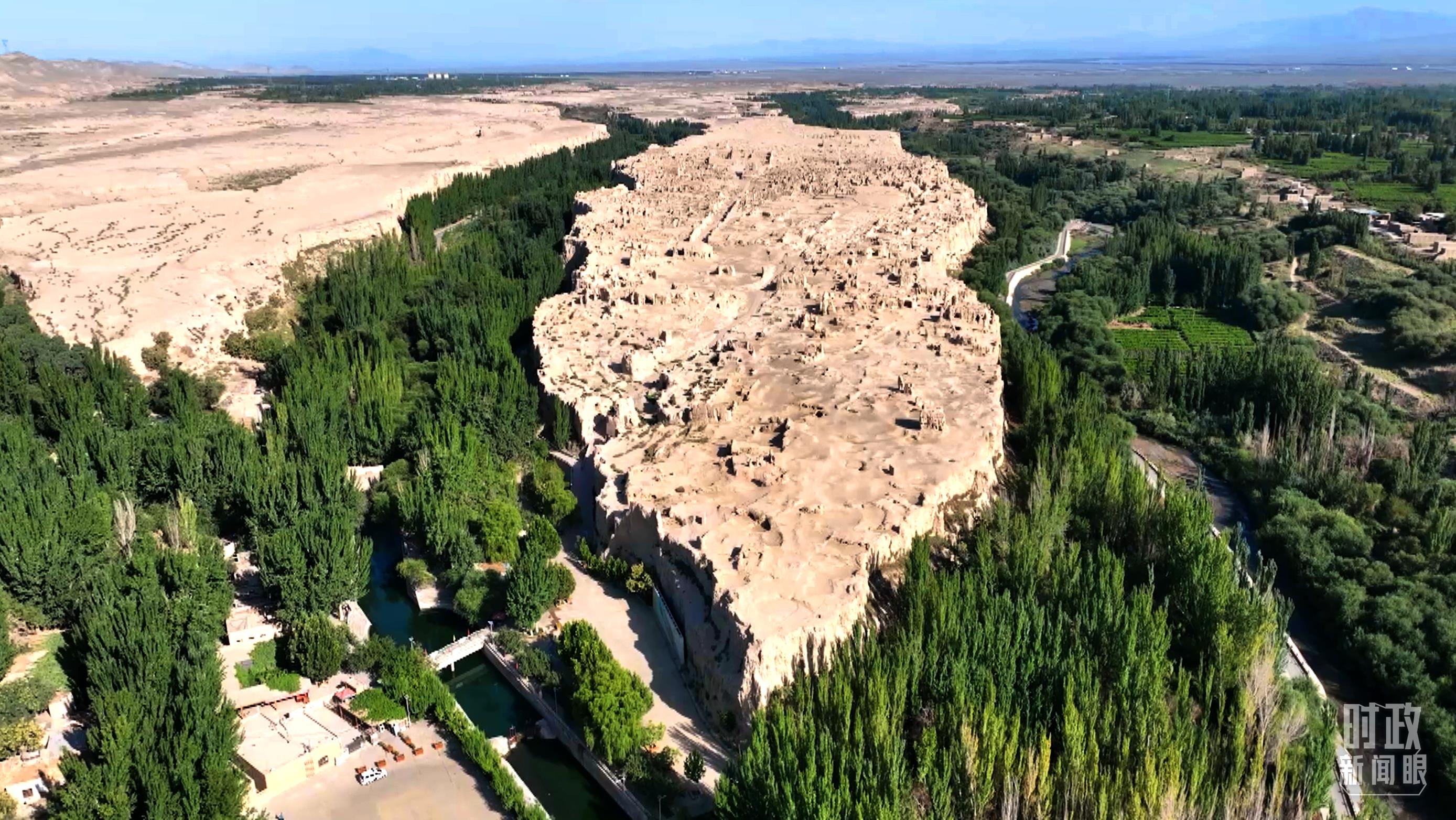 △空中一覽交河故城。(總臺記者曹江拍攝)