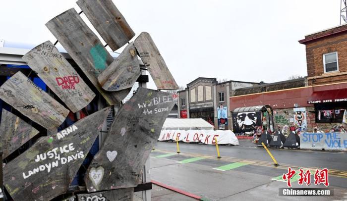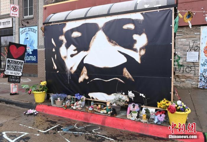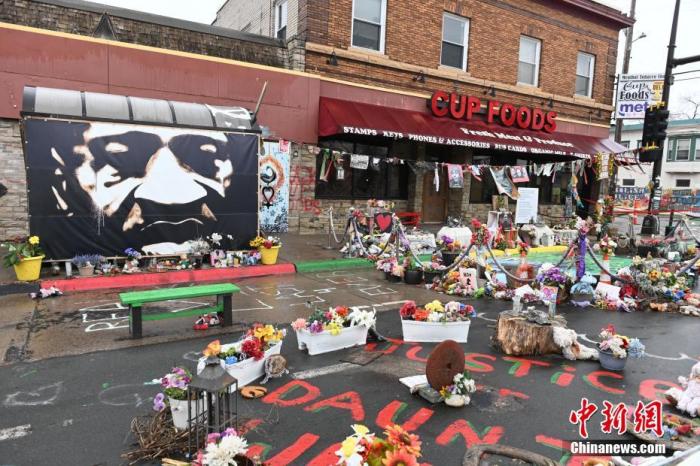 圖為弗洛伊德遭警察“跪壓”的事發(fā)地,如今由民間自發(fā)形成了一片紀(jì)念園地。