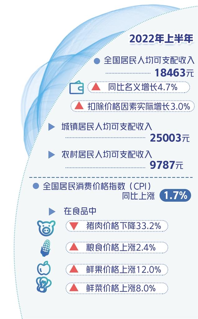 上半年,各地區(qū)各部門著力穩(wěn)定宏觀經(jīng)濟(jì)大盤,全國居民收入繼續(xù)保持增長。