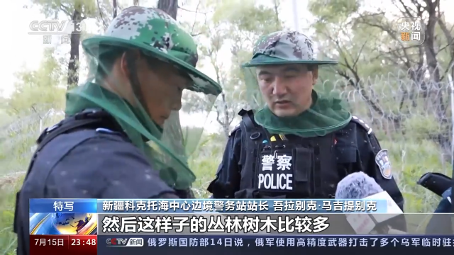 新疆科克托海中心邊境警務(wù)站站長(zhǎng) 吾拉別克·馬吉提別克:因?yàn)槲覀冞@防區(qū)有戈壁沙漠,然后這樣子的叢林樹木比較多,干枯的,然后行進(jìn)過(guò)程中(常有)劃破我們裝備這樣的事情。