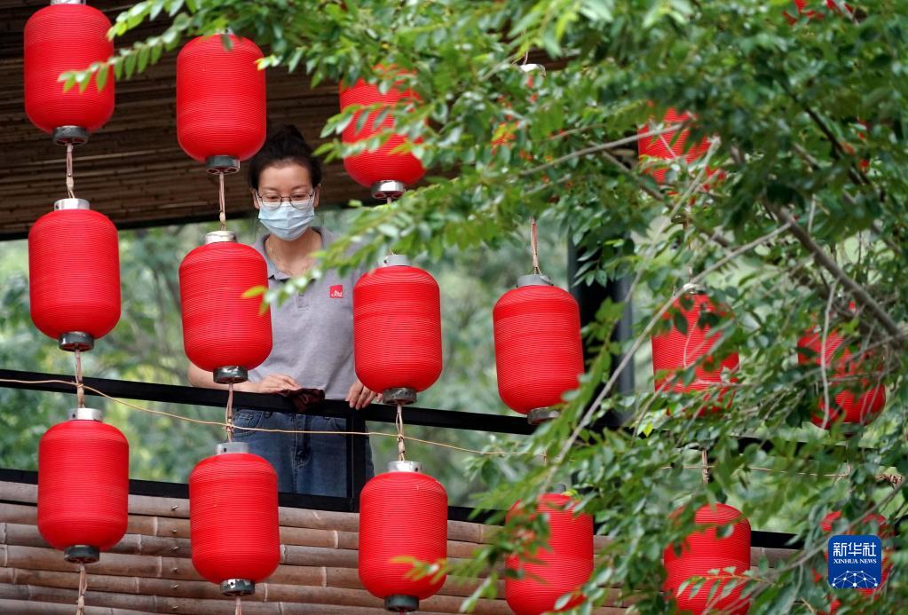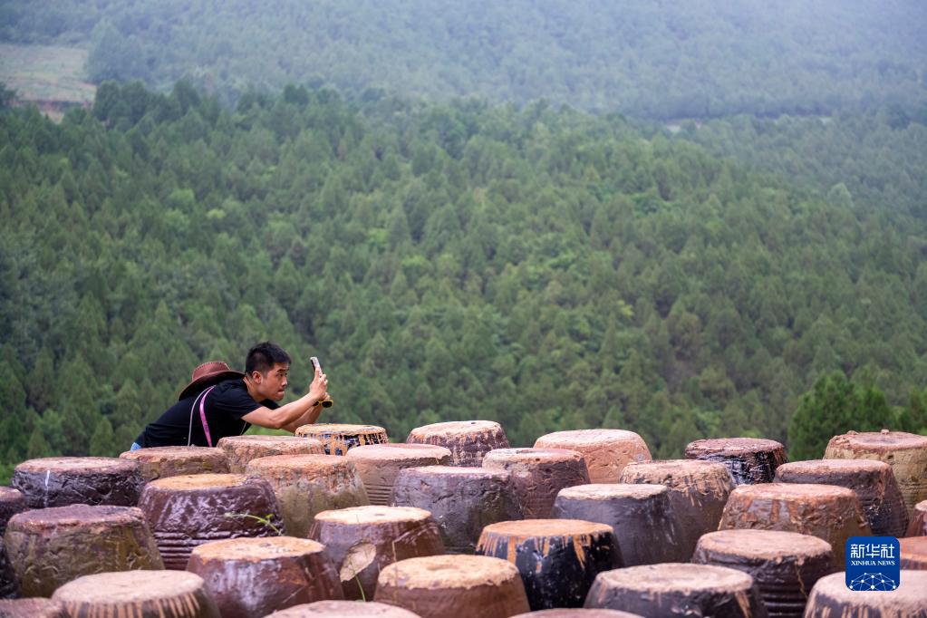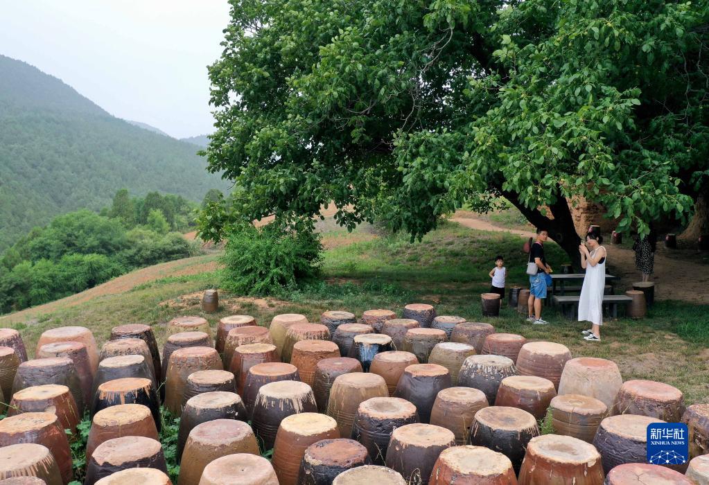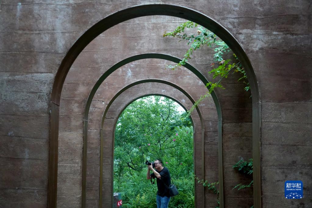 游客在“洛陽三彩陶藝村”游覽拍照(7月13日攝)。新華社記者 李安 攝