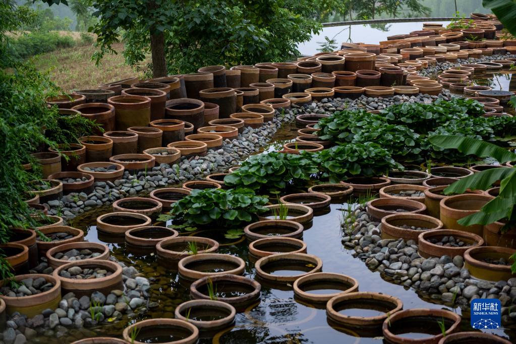 這是7月13日在“洛陽三彩陶藝村”拍攝的一處陶藝裝置作品。新華社記者 徐嘉懿 攝