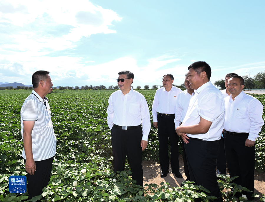 13日,習近平總書記來到新疆生產(chǎn)建設兵團八師石河子市。他參觀新疆兵團軍墾博物館,走進田間察看棉花長勢,同兵團干部群眾親切交談……