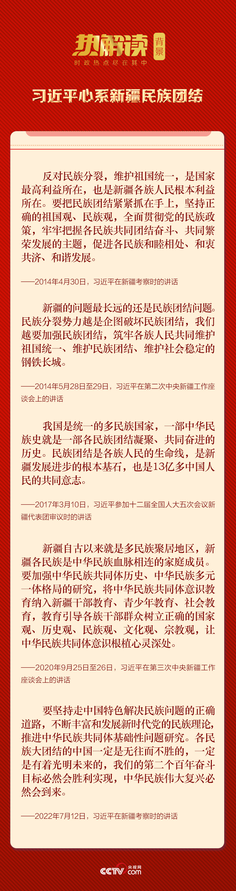 2014年5月,在第二次中央新疆工作座談會上,習(xí)近平總書記鮮明提出“中華民族共同體意識”重大論斷。同年9月,在中央民族工作會議上,總書記明確強(qiáng)調(diào)“堅(jiān)持打牢中華民族共同體的思想基礎(chǔ)”。