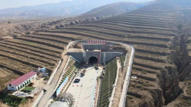 正在建設(shè)中的集大原高鐵項(xiàng)目控制性工程——恒山隧道北口