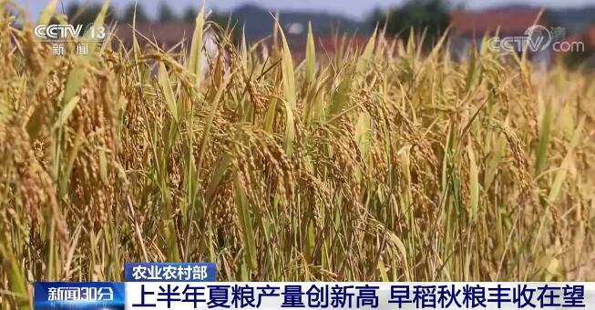 上半年,我國夏糧產(chǎn)量再創(chuàng)歷史新高,達(dá)2948億斤,成為經(jīng)濟(jì)社會發(fā)展的突出亮點(diǎn)。早稻及秋糧豐收基礎(chǔ)較好。目前,早稻收獲過六成,豐收在望。秋糧面積超過13億畝,長勢總體正常。 “菜籃子”產(chǎn)品供應(yīng)充足,市場運(yùn)行總體平穩(wěn)。